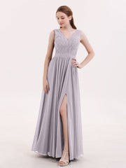 • Constance ist ein sexy Chiffon Brautjungfernkleid mit Spitze am Oberkörper, die rückenfreie Kleider sind immer romantisch, der V-Ausschnitt und Schlitz machen das Kleid anmutig. Es kann auch als Ballkleid verwendet werden.